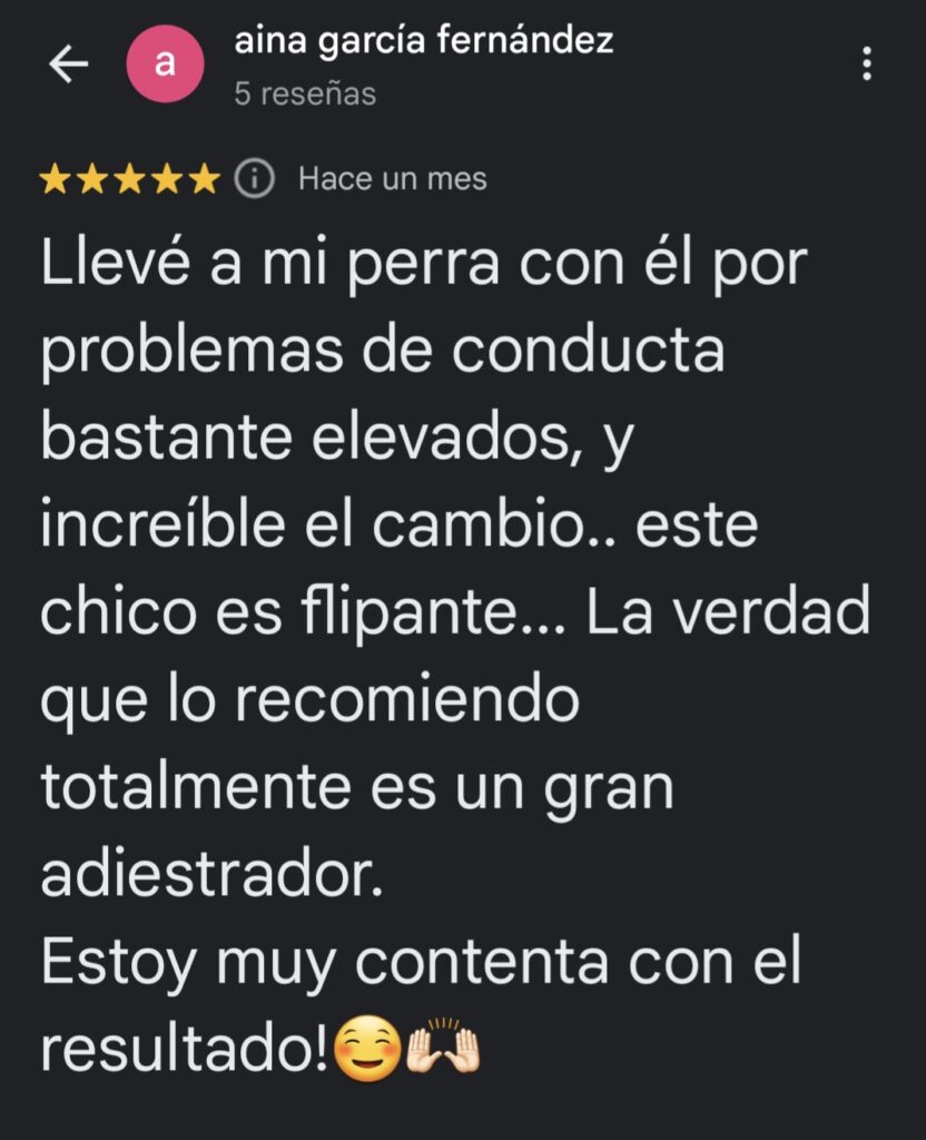 Trabajo desde el comportamiento y energía tanto tuya como la del perro y día a día obtendrás los resultados que tanto llevas esperando sin tener que dejar al perro de lado y con miedo.